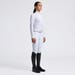The Cavalleria Toscana girl’s competition shirt is designed to provide comfort and style during events. Made from breathable, stretch technical jersey, it ensures freedom of movement and a flawless fit. The white poplin bib adds a touch of elegance, while the hidden press-stud buttons and the collar finished with an embroidered CT logo complete the refined design. Perfect for young riders looking for a technical yet sophisticated garment for competitions.