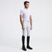 The Cavalleria Toscana Men’s Short Sleeve Competition Shirt is designed to deliver performance and elegance during equestrian competitions. Made from breathable technical jersey, it ensures comfort, freedom of movement, and quick drying. The crisp white poplin collar with hidden snap buttons adds a refined, professional touch. A chest pocket is finished with a subtle tone-on-tone CT silicone patch, while the embroidered logo on the collar enhances the shirt’s signature look. Ideal for warmer show days, this shirt blends functionality, style, and equestrian tradition.