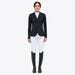 This Cavalleria Toscana REVOLUTION competition jacket for women is constructed with double fabric. Sensitive® fabrics are combined with the 3D technical knit to create a garment of extreme elegance and comfort. Designed for performance in sports, the jacket provides high breathability, fitting your body like a second skin without impeding movement. In fact, the garment features a technical knit insert on the back and arms for optimal moisture management, while the front is made of water-repellent fabric with a thermodynamic inner lining to protect you from wind and rain. This jacket features a practical zip and button closure, two side zip pockets and is finished with an embroidered logo on the shoulder.