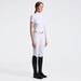 The Cavalleria Toscana women's short-sleeved competition shirt is designed to deliver high performance and impeccable style. Made from lightweight technical fabric with perforated jersey inserts, it ensures excellent breathability and comfort during competitions. The white poplin collar and invisible zipper add elegance and practicality, while the thermo-applied embroidered logo on the back and collar provides a distinctive touch. With its ergonomic cut and high-quality materials, this shirt is the perfect choice for riders seeking a functional and refined garment.