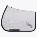 Jumping saddle pad with diamond quilting and a Cavalleria Toscana Team logo embroidered on the side. This accessory has an outer performance fabric face that’s lined in waffle texture cotton fabric on the inside.