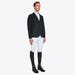 This men's riding jacket is made from lightweight highly breathable technical material, ideal for summer days. The water repellent fabric combines elegance and performance thanks to antibacterial and UV protections. It fits to the body following your movements, without constriction. The classic cut jacket is closed by three front button and features two front pockets and a breast-pocket. It's refined by an alcantara collar and contrasting piping.