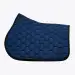 Jumping saddle pad with wave quilting and an embroidered logo on the side. This accessory has an outer performance fabric face that’s lined in waffle texture cotton fabric on the inside.