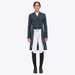 This women's riding tailcoat combines elegance and performance. The highly breathable and water repellent technical 4-way stretch fabric follows trough your movements without constriction. The fabric also provides antibacterial properties and UV protection, ideal for sports activities. The tailcoat is refined by alcantara collar, piping and points, while the metallic buttons are refined by a logo. Bottom tails include removable weights for greater stabilty and elegance during performance. The look is completed by a functional front pocket and an embroidered logo on the shoulder.