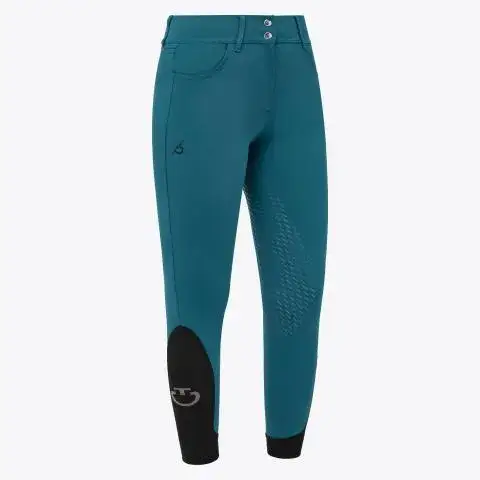 Full-seat breeches are a riding wardrobe must-have, updated by Cavalleria Toscana with performance fabrics and distinctive graphic elements. In breathable four-way stretch fabric, they flex and bend with the body for maximum freedom of movement. The ergonomic seams define the comfortable fit, while silicone details on the inside of the knee and at the back ensure stability while riding. The high-rise waistband is trimmed in a grippy material that will hold your shirt in place, while the outside has large belt loops. Zip fly and two button fastening. Decorated by the Cavalleria Toscana logo, the elasticated ‘socks’ at the lower leg are comfortable under riding boots.