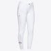 The women's riding breeches are made from 4-way stretch jersey. The technical material provides high breathability and freedom of movement: this fabric adheres perfectly to your body, without constriction. The transparent knee grip allows the right stability on the horse, while the stretch-knit socks improve the fit beneath your boots. It features two front pockets and a zip up front with botton.