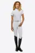 Women's short-sleeved competition polo shirt. Ideal for all riders. Made of stretch technical jersey piqué with mesh inserts that provide greater breathability. Poplin collar with rubberized logo detail and hidden snap buttons on the collar, to combine design and comfort.