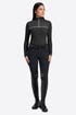 The design features a water-repellent matte zip with the puller mounted on a coated side for a secure and practical closure. The front print and back logo add a distinctive touch to the garment. Perfect for training with confidence and style, this polo is a must-have for any female rider who wants to stand out with a technical and modern look.