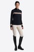 The design features an elegant crew neck and jacquard striped details that add a distinctive touch. The ribbed hem and cuffs in matching color complete the classic and elegant look of the sweater. The RG logo is positioned on the back, adding a recognizable element to the garment. Perfect to wear both in the stables and during leisure time, this sweater is a must-have for any rider looking for a casual yet sophisticated look.