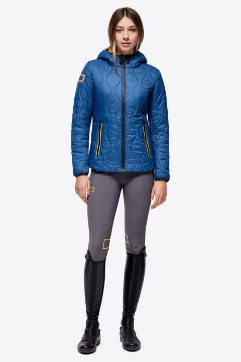 Piumino da training con cappuccio avvolgente, cintura in vita, spacchi con zip e chiusura con zip termonastrata a doppio cursore. Fondo maniche in lycra® con foro passapollice.
