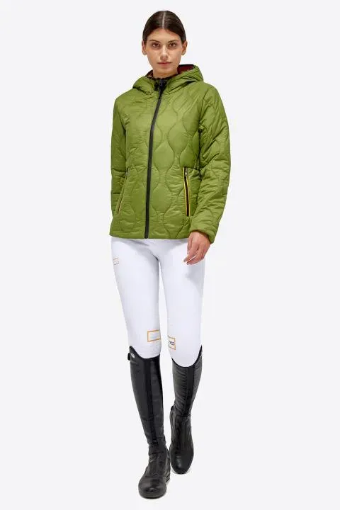 Piumino da training con cappuccio avvolgente, cintura in vita, spacchi con zip e chiusura con zip termonastrata a doppio cursore. Fondo maniche in lycra® con foro passapollice.