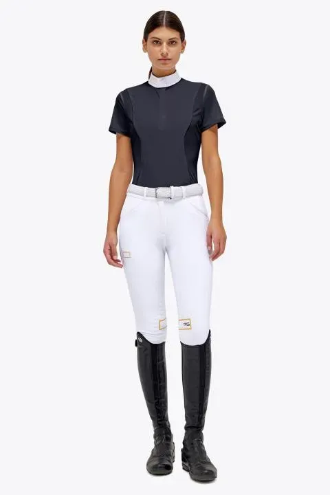 La polo da competizione donna RG in Jersey e Mesh è l'emblema di eleganza ed atleticità. Il tipico collo in popeline impreziosito dal logo RG insieme all'innovativo design frontale forniscono al capo vestibilità e libertà di movimento. Lasciati accompagnare in ogni tua competizione da questo capo altamente tecnico e performante.
